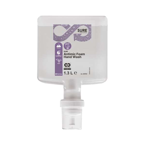 SURE Antibac Foam Hand Wash Free fait partie d’une gamme formulée à base de plante, 100% biodégradable pour l’hygiène corporelle et pour le nettoyage quotidien. SURE Antibac Foam Hand Wash Free est un savon désinfectant sans parfum ni colorant assurant de hauts standards de désinfection. Son efficacité prouvée et sa formule douce pour la peau en font un produit idéal pour une utilisation en zone de préparation alimentaire, en santé, ou tout autre secteur où un niveau d’hygiène stricte est nécessaire. SURE Antibac Foam Hand Wash Free dispose d’un très bon profil environnemental. Il est 100% biodégradable*, sans paraben, ni triclosan et non classé dangereux.