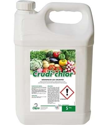 CRUDI’CHLOR est une solution liquide jaunâtre translucide. CRUDI’ CHLOR est spécifiquement développé pour la désinfection des crudités